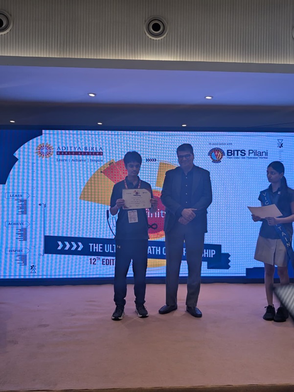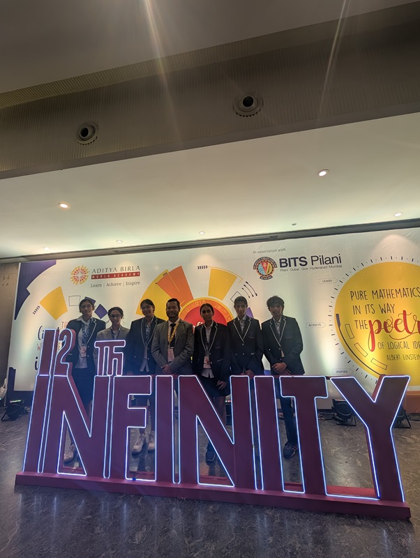 3 Senior Teams and 2 Advanced Teams comprising 15 students from Grades 9 to 11 travelled to Mumbai to participate in INFINITY, an annual prestigious Inter-School Mathematics Competition organised by Aditya Birla World Academy in association with BITS Pilani. The competition took place from 8th to 10th Jan.