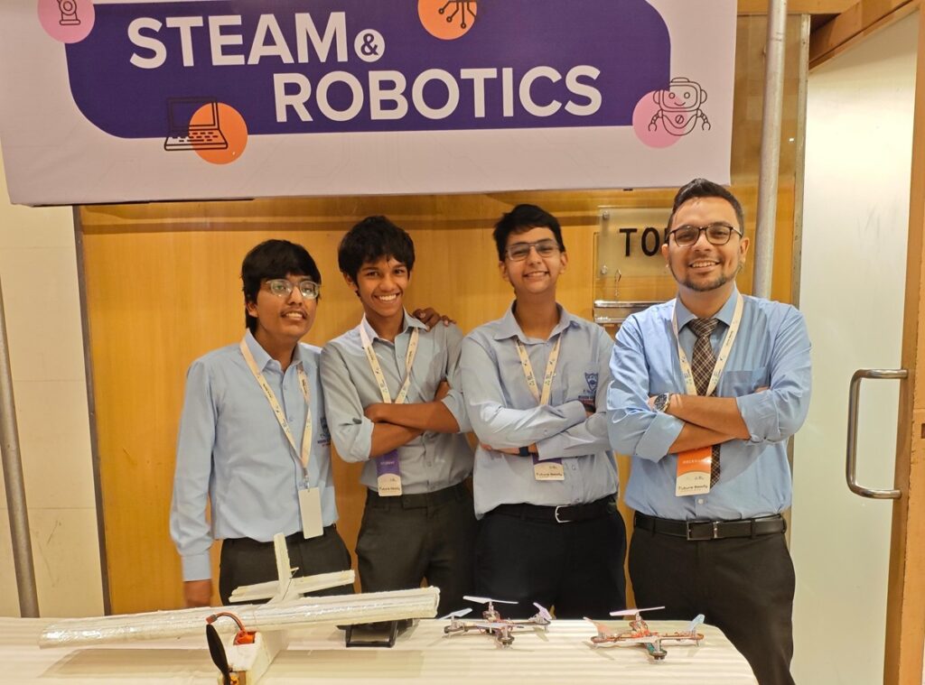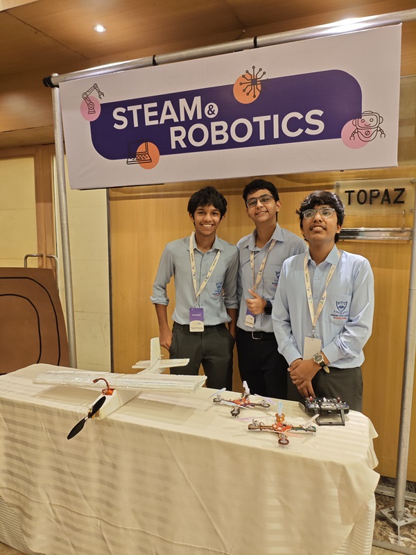 On 19th September 2025, Utkarsh Bajoria, Vivaan Ghosal and Aayush Dugar with Mr.Abir Ghosh attended the GSL Future Ready Conclave where the students showcased their work in aviation technology. They presented a quadcopter drone and demonstrated its calibration, functionality and flight, along with an autopilot remote controlled plane with automated aerial navigation using Raspberry Pi and ML algorithms.